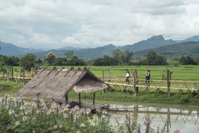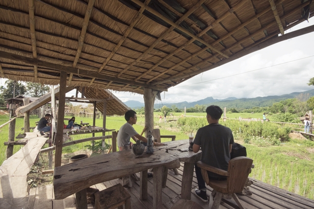 ที่อำเภอปัวยังมีอีกสถานที่เช็คอินที่ไม่ควรหลุดจากลิสต์ด้วยประการทั้งปวง นั่นก็คือ ร้านกาแฟบ้านไทลื้อ ตัวร้านเป็นกระท่อมไม้ไผ่ตั้งเรียงรายอยู่บนคันนาเชื่อมต่อด้วยสะพานไม้ไผ่ ทำเอานักเที่ยวอย่างเราๆ สนุกสนานกับการถ่ายรูปและเดินเล่นบนสะพานไม้ไผ่จนแทบจะลืมกาแฟในมือไปเลยทีเดียว