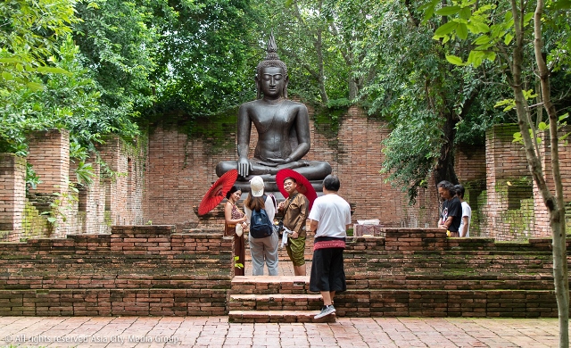 อีกไฮไลท์ที่เก๋สุด ๆ คือ วิหารสมัยสุโขทัยในโซน ณ สัทธาปฏิมา ที่จำลองออกมาได้เหมือนจริงสุด ๆ โดยในแต่ละรอบการแสดงจะมีการฉาย Projector Mapping เล่าเรื่องราวการเดินทางของพระพุทธศาสนาจากอินเดียสู่อาณาจักรสุโขทัย ขอบอกว่าแสง สี เสียง อลังการจนไม่น่าเชื่อว่ามีแบบนี้ในประเทศไทยด้วย /เอามือทาบอก
