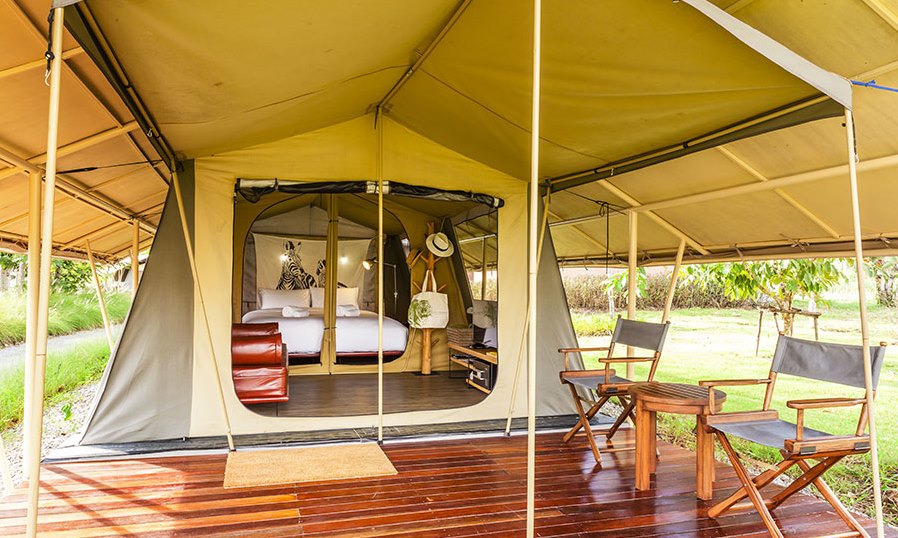 เปลี่ยนบรรยากาศห้องพักแบบบ้าน ไปนอนเต๊นท์สไตล์ซาฟารีโดยไม่ต้องรอ Wonderfruit! ภายในมีสิ่งอำนวยความสะดวกครบทุกอย่าง เลือกได้ทั้งแบบห้องน้ำในตัวและห้องน้ำรวม แถมด้านในจะมีโทรทัศน์ ตู้เย็น กาน้ำร้อน และมินิบาร์สำหรับคนที่หิวบ่อยๆ อย่างเราด้วย ที่เจ๋งมากคือทุกเต๊นท์มีระบบรักษาความปลอดภัยอย่่างดี มีทั้งกุญแจล็อคและมีพี่รปภ.เดินตรวจตราทุกชั่วโมง แถมมีชุดบาร์บีคิวให้สั่งมาปิ้งกินใต้เเสงดาวด้วยนะ ดีไปอีก!