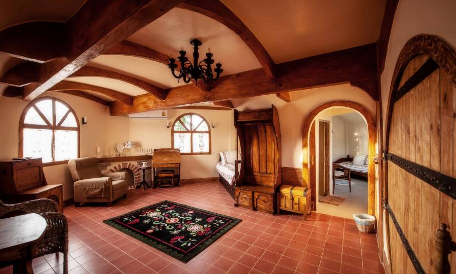 ใครเป็นแฟน The Hobbit ต้องมาทางนี้เลย! เพราะที่บ้านสวนน้อย เค้าเนรมิตที่พักให้เหมือนเราได้หลุดไปอยู่ในภาพยนตร์เลยทีเดียว แต่ละบ้านจะประตูสีต่างกันไป มาในขนาดไซส์กระทัดรัด ห้องชุดบนเนิน 3 ห้องนอนที่มีโพรงและประตูเชื่อมถึงกันได้ด้วยนะ แต่ถ้าสนใจแวะไปเดินเล่นถ่ายรูปก็ไม่มีปัญหา