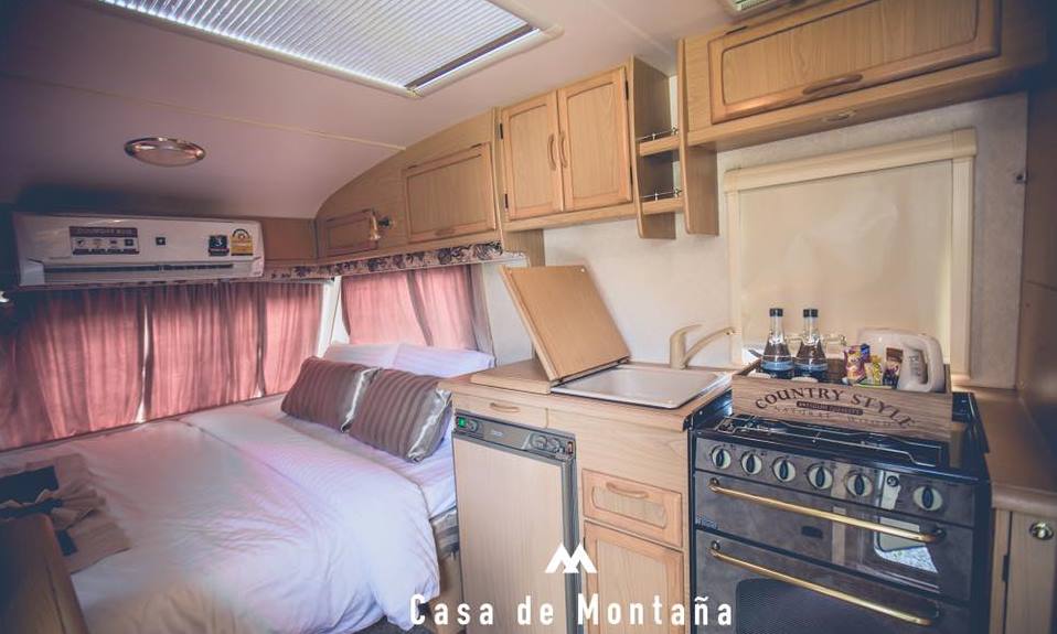 อีกหนึ่งประสบการณ์การพักผ่อนที่ไม่เหมือนใคร คือ การได้พักในรีสอร์ทรูปแบบรถบ้านเหมือนในหนัง! ซึ่ง Casa de Montana นั้นได้เปิดบริการรถบ้านทั้ง 5 หลังเป็นที่แรกในเขาใหญ่เลยนะ ถึงจะอยู่ในรถที่ดูเหมือนจะไม่กว้าง แต่มีสิ่งอำนวยความสะดวกครบทุกอย่างนะ ไม่ว่าจะเป็นทีวี เครื่องปรับอากาศ โซฟา อ่างล้างมือ และตู้เก็บของ มีการจัดสรรพื้นที่ได้ดีจริงๆ ไม่ต้องกลัวอึดอัดด้วย เพราะมีกระจกใสให้เรานอนดูวิวด้านนอกได้แบบชิลๆ บริเวณรีสอร์ทก็ครบครันไปด้วยร้านอาหาร (Casa De Cafe) และลานเบียร์ (Casa De Brew) ยิ่งอากาศดีๆ ยิ่งฟินจ้า!