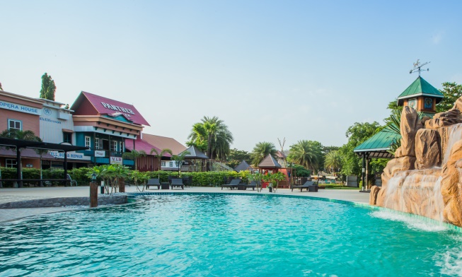 รีสอร์ทหรูบรรยากาศเมืองนอกสไตล์ยุโรป เราบอกได้เลยว่าเหมาะสำหรับคนรักความสงบมากด้านในรีสอร์ทมีร้านอาหาร ฟิตเนส ห้องประชุม สวนขนาดใหญ่ สนามเด็กเล่น สนามเทนนิส และมีบริการรถจักรยานให้ผู้พักอาศัยอย่างเราได้ปั่นดื่มด่ำบรรยากาศได้เต็มที่ด้วยล่ะ ถ้าใครเห็นแล้วอาจจะรู้สึกเหมือนเคยผ่านตามาแล้ว เราจะบอกว่าที่นี่เคยถ่ายทำละครเรื่องสุภาพบุรุษจุฑาเทพด้วยนะ ถึงจะผ่านไปนานแล้วแต่ถ้าใครยังอินกับละครก็มาได้ มีห้องให้เลือกตั้งแต่ราคาหลักพันไปจนถึงหลักหมื่น เลือกได้ตามงบเลย