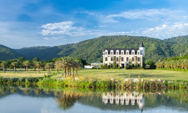 ไม่ใช่แค่ภายนอกที่ดูหรูหราเหมือนปราสาท แต่ภายในก็สวยและให้อารมณ์เจ้าหญิงไม่แพ้กันเลยทีเดียว โดยทั้ง 63 ห้องตกแต่งเป็นสไตล์ชนบทฝรั่งเศสทั้งหมด เลือกใช้โทนสีพาสเทลดูสบายตา และมัั่นใจได้เลยว่าบรรยากาศที่นี่ดีมาก เพราะตั้งอยู่ใกล้ทำเลทองอย่างอุทยานแห่งชาติเขาใหญ่ ไปแหล่งท่องเที่ยวฮิตๆ ได้ไม่ยากเลยล่ะ แถมยังนับเวลาเข้าพักตามเวลาจริงด้วยล่ะ อยากนอนยาว 24 ชม. ก็ทำได้ ไม่เห็นต้องรีบร้อนเลย (สะบัดผม)