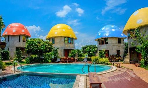 เพราะว่าเป็นส่วนขยายธุรกิจมาจากฟาร์มเห็ดเพื่อสุขภาพ รีสอร์ทก็เลยมีรูปทรงเห็ดสีสันน่ารักในสไตล์ลอฟต์ และปูนเปลือยนั่นเอง เราชอบมากที่เค้าใช้ชื่อพันธุ์เห็ดเป็นชื่อบ้านพักแต่ละหลัง เช่น บ้านชิทาเกะ หรือบ้านหลินจือ สามารถพักได้ตั้งแต่ 2-4 คน สำหรับแขกที่มาพักที่นี่จะได้ไปดูฟาร์มเห็ดและกรรมวิธีการผลิตด้วยนะ พักผ่อนสบายแล้วยังได้ความรู้กลับบ้านอีก คุ้มดีจัง