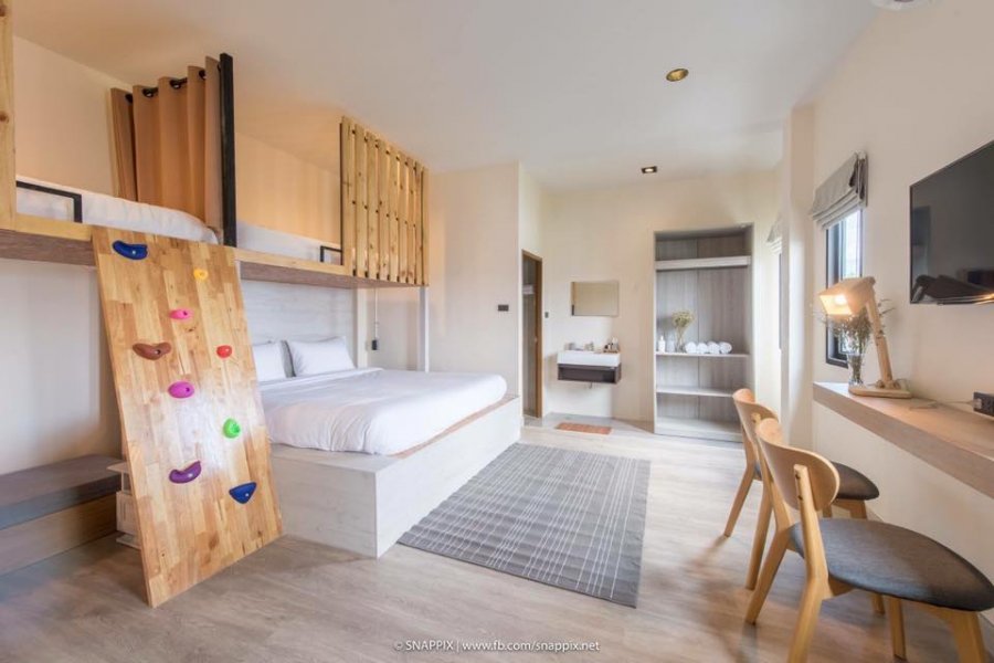 ในส่วนการออกแบบที่นี่เราว่าน่าสนใจมากๆเลยล่ะ เป็นแนว loft ที่มีห้องรวม ห้องหญิงล้วน และห้อง Family ที่มีการจำลองเป็น Family room playground ด้วย (ใช้วัสดุที่รองรับการกระแทกด้วยนะ) วัดสวยๆในเชียงใหม่อยู่ใกล้แบบเดินไปก็ถึง แถมยังใกล้วัดเก่าแก่อย่างวัดโลกโมฬีด้วยนะ