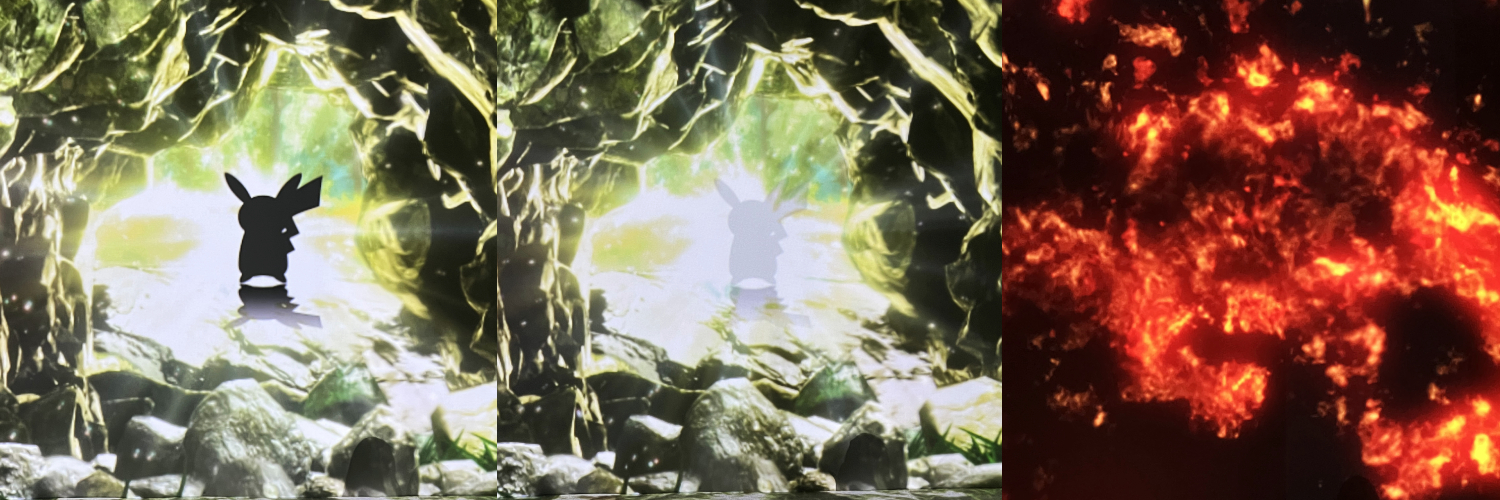 ทั้งนี้ทั้งนั้น ห้องจัดแสดงหลักจะมีด้วยกัน 3 ฉาก คือ Sunset สีแดง Water สีน้ำเงิน และ Forest สีเขียว ตามประเภทของมอนสเตอร์ (ซึ่ง Forest นี้ถ่ายรูปออกมาเริ่ดสุด!) จากนั้น ผู้เข้าชมสามารถเดินไปยังห้องด้านข้าง ที่งานมีเดียไม่หวือหวาเท่า แต่สร้างความประทับใจได้ไม่แพ้กัน ด้วยความคมชัดและความจัดจ้านของมีเดียดิสเพลย์ ซึ่งด้วยความที่พาร์ตที่ 2 นี้ไม่ใช่งานจัดแสดงหลัก เลยมีคนน้อยกว่า ให้ความรู้สึกเป็นส่วนตัวกว่า และเหมือนมันเปิดทางให้เราดื่มด่ำกับบรรยากาศตรงหน้ามากขึ้น