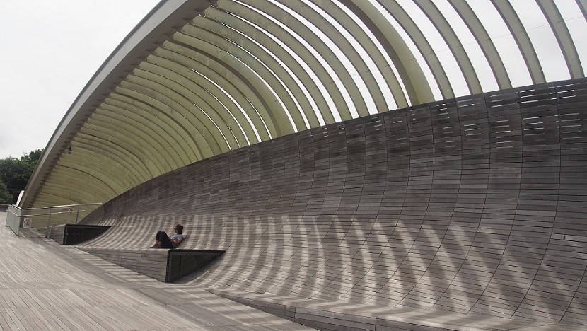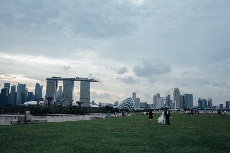 ภาพลานกว้างๆ ที่เห็นนั้นความจริงแล้วเป็นดาดฟ้าของเขื่อนกักเก็บน้ำขนาดใหญ่ชื่อ Marina Barrage ซึ่งกั้นระหว่างอ่าวมาริน่าและน้ำทะเล เราชอบที่นี่เพราะไม่ได้มีแต่นักท่องเที่ยว แต่ชาวสิงคโปร์แท้ๆ ก็ยังมาพักผ่อนหย่อนใจกันที่นี่ บ้างวิ่งออกกำลังกาย บ้างขี่จักรยาน บ้างมาเล่นว่าว เล่นบอล (มีถ่าย pre-wedding ด้วยนะ) ทำกิจกรรมทุกชนิดที่ทำได้บนสนามหญ้าเขียวๆ เราจึงได้แอบดูชีวิตประจำวันของคนท้องถิ่น แถมยังได้ชมวิวของสิ่งก่อสร้างไอคอนนิกของสิงคโปร์อย่าง Marina Bay Sands, Gardens by the Bay และ Singapore Flyer ด้วย เราขอแนะนำให้ไปช่วงแดดร่มลมตก จะได้นั่งรับลมชิวๆ พักเท้าหลังจากเดินเหนื่อยมาทั้งวัน และถ้าไม่รีบไปไหนก็อยู่ดูพระอาทิตย์ตกพร้อมกับรอดูบ้านเมืองเริ่มสว่างไสวขึ้นมาอีกครั้งด้วยแสงไฟในยามค่ำคืน