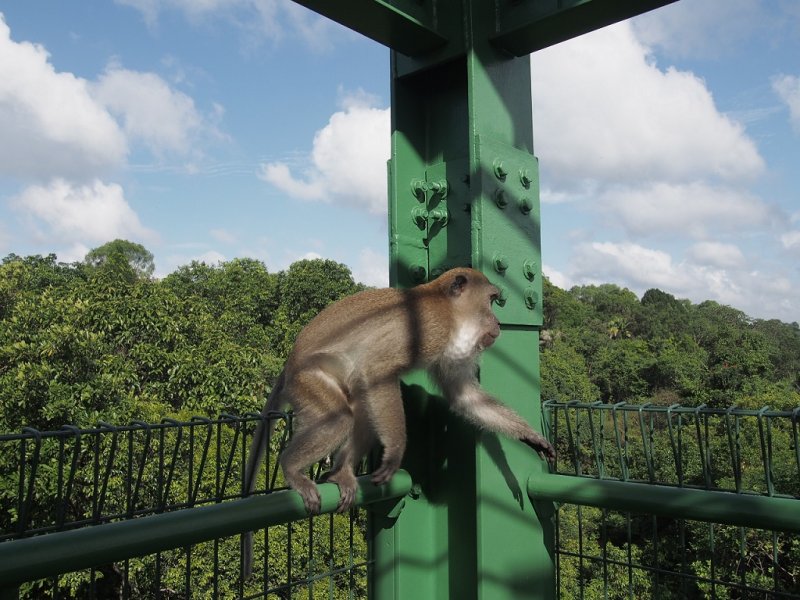 จากนั้นจึงเดินไปหอดูวิว Jelutong Tower (ซึ่งเราให้ชื่อเล่นว่าจตุรงค์ทาวเวอร์ ฮ่าๆ) ที่ให้วิว 360 องศาของ MacRitchie Reservoir ชนิดที่ทำให้เราฮัมเพลง Top of the world ของ The Carpenters ไฮไลท์เด็ดคือตอนที่เจอเจ้าลิงจอมแก่นที่ปืนหอขึ้นมาดูวิวกับเรา (ที่นี่ลิงเยอะมาก เดินตามทางก็เจอ แต่ห้ามให้อาหารเด็ดขาดนะ) แถมมานั่งโพสท่าสุดสตรองให้เราอีกต่างหาก ยกกล้องขึ้นมากดรัวๆ เลยสิคะจะรออะไร