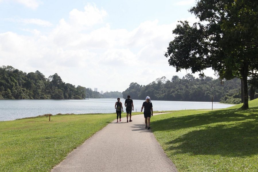 เมื่อลงจากหอแล้วเราก็เดินเลาะไปทาง Singapore Island Country Club สนามกอล์ฟกว้างขวางซึ่งมีต้นไม้ร่มรื่นและขนาบข้างด้วยบริเวณอ่างเก็บน้ำ ตอนที่เราเดินไปถึงจุดนี้แดดออกพอดี ทำให้วิวสวยมาก ประกอบกับอยู่ริมน้ำทำให้ลมดี เราจึงแวะนั่งชิวอยู่พักใหญ่เลยล่ะ จากนั้นเดินต่ออีกหน่อยก็ถึงทางออกแล้ว เป็นอันจบเส้นทางที่เราเลือกเดินสำหรับวันนี้