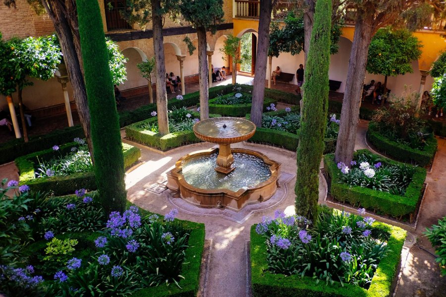 นอกจากสถาปัตยกรรมภายในแบบอาหรับๆ แขกๆ ผสมผสานกับอิทธิพลยุคเรอเนสซองซ์แล้ว บรรดาสวนน้อยใหญ่ด้านในก็สวยงามไม่แพ้กัน เราใช้เวลาเกือบทั้งวันกว่าจะเดินสำรวจครบ