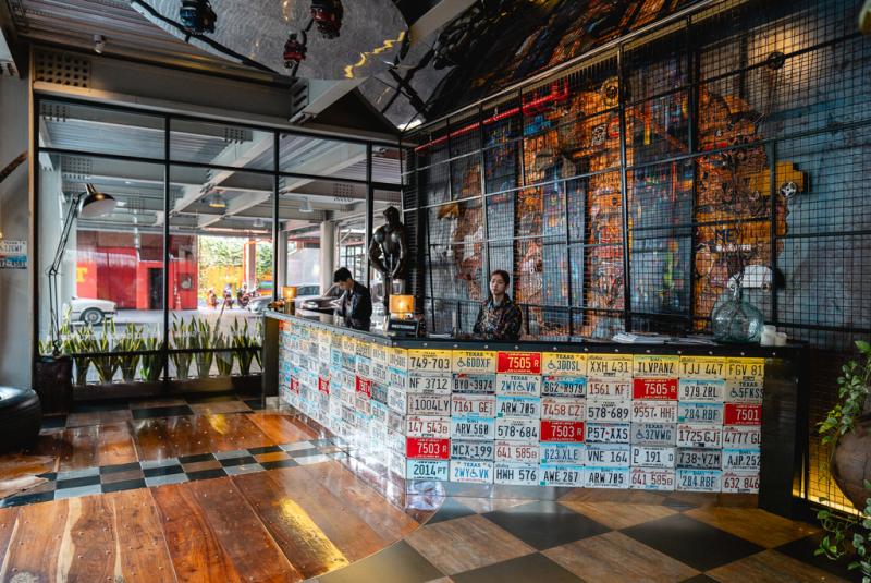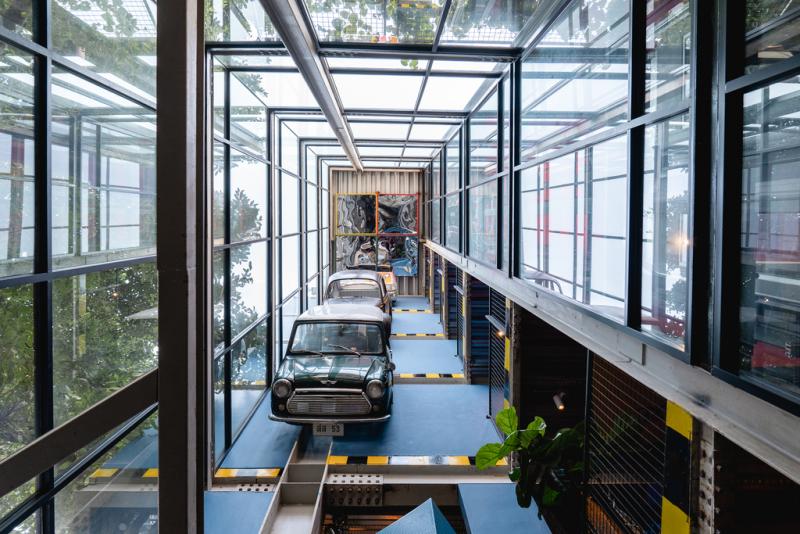 ด้วยพิกัดที่อยู่ตรงสี่แยกห้วยขวาง ห่างจากรถไฟฟ้าใต้ดินสถานีห้วยขวางแค่ 800 เมตร ทำให้การเดินทางมาที่นี่ง่ายสุด ๆ แถมไม่ต้องกลัวเลยว่าจะหาไม่เจอ เพราะตัวอาคารที่ออกแบบในสไตล์ฟังกี้เหมือนหลุดไปอยู่ในอเมริกาช่วงปี 40s ก็ทำให้คนชอบสถาปัตยกรรมดีไซน์แปลกตาอย่างเรา ๆ สะดุดตาได้แล้ว แถมโครงรถคลาสสิคที่แปะติดกับตัวตึกก็ทำให้ที่นี่กลายเป็นพิกัดถ่ายรูปแห่งใหม่ในห้วยขวางได้ไม่ยาก นอกจากนี้ ด้วยความที่เจ้าของโรงแรมเป็นนักสะสมรถและภาพวาด ทำให้ภายในบูทีคโฮเทลแห่งนี้ดูอาร์ตสุด ๆ ตั้งแต่ล็อบบี้ไปยันห้องพักด้วยของสะสมที่นำมาตกแต่งไม่ว่าจะเป็นงานศิลปะ โคมไฟสวย ๆ และบรรดาไม้แกะสลัก