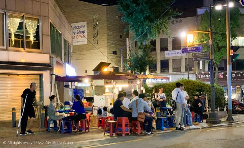 หน้าร้อนที่เกาหลีอาจร้อนจนเราสู้อากาศภายนอกไม่ไหว ต้องหาร้านที่มีเครื่องปรับอากาศอยู่ตลอด แต่ถ้าไม่มีแดดแล้วอย่างตอนกลางคืนล่ะก็ การมานั่งโพจังมาจา หาเครื่องดื่มเย็น ๆ คู่กับอาหารเกาหลีเผ็ดร้อนก็เป็นอะไรที่ฟินอยู่ไม่น้อยเลยนะ ตลอดบริเวณทางออกที่ 4, 5 และ 6 ของสถานีนี้เต็มไปด้วยร้านโพจังมาจามากมายให้เราเลือกไม่หวาดไม่ไหว ช่วงหน้าร้านร้านค้าจะทยอยเปิดให้บริการตั้งแต่ 6 โมงเย็นเป็นต้นไป และขายยาวไปจนถึงช่วงตี 3-4 เลยด้วย นอกจากนี้ย่าน จองโน ซัม กะ ยังถือเป็นย่านของชาวเกย์ในโซลด้วยนะ เราจึงจะได้เห็นหนุ่ม ๆ มาสังสรรค์อย่างคึกคักแถวนี้เสมอด้วยล่ะ