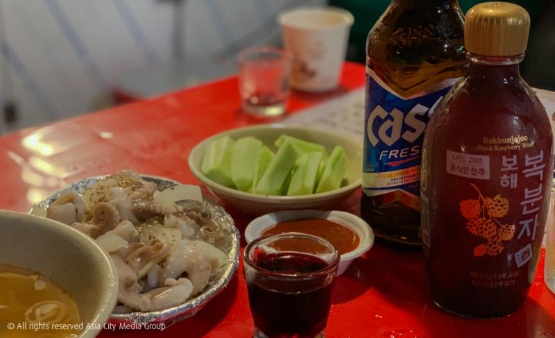 ไหน ๆ ก็อยู่ที่แถวสถานี Jongno 3-ga กันอยู่แล้ว เราเลยอยากชวนให้มาคลายร้อนแบบชิลล์ ๆ ยามค่ำคืนกันดูบ้าง หากใครชอบดูซีรีส์เกาหลีคงคุ้นเคยกับร้านอาหารเกาหลีข้างทางที่มีผ้าคลุมสีแดง ที่ชาวเกาหลีชอบมานั่งกินดื่มกัน ร้านแบบนี้มีชื่อเรียกว่า โพจังมาจา ซึ่งที่จริงแล้วก็มีหลายสถานที่ในกรุงโซลที่มีร้านโพจังมาจาแบบนี้ เช่น อึลจิโร ซัม กะ (Euljiro 3-ga) หรือย่านท่องเที่ยวอย่างมยองดงก็มีเช่นกัน แน่นอนว่าย่านจองโน ซัม กะ ก็เป็นอีกย่านที่มีโพจังมาจาเยอะแยะเลย