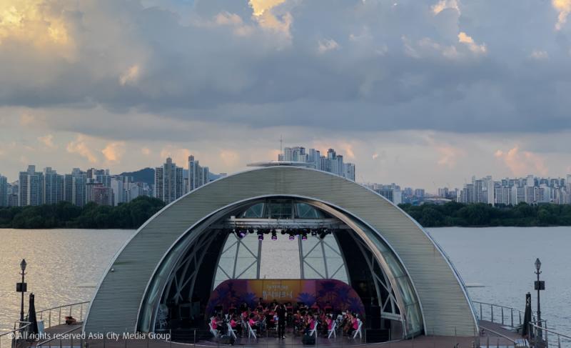 จะมีอะไรคลายร้อนดีไปกว่าริมน้ำล่ะ! แต่ริมน้ำที่เราว่านี้ไม่ใช่ทะเลแต่อย่างใด แต่เป็นแม่น้ำใจกลางเมืองโซลอย่างแม่น้ำฮันนี่แหละ ขอบอกว่าในช่วงหน้าร้อนนี้ริมแม่น้ำฮันจะเป็นที่นิยมมาก ๆ เพราะสามารถมาจับจองพื้นที่ตอนเย็น ๆ กางเสื่อนอนเล่นตากอากาศกันได้สบาย ๆ เลยล่ะ ซึ่ทางการเองก็มีกิจกรรมมากมายมารองรับชาวเกาหลีใต้และนักท่องเที่ยวต่าง ๆ อย่างเต็มที่ อย่างในวันที่เราไปนั้นก็มีการแสดงออเครสตร้าบนเวทีทรงครึ่งวงกลมกลางแม่น้ำ ที่มีขั้นบันไดอีกฝั่งให้เรานั่งชมได้แบบผ่อนคลาย ส่วนด้านบนนั้นก็มี Flea Market ที่ชื่อ Seoul Bamdokkaebi Night Market ตั้งแต่เดือน มี.ค.-ต.ค. แบ่งออกเป็น 2 โซน โซนด้านหน้าจะเป็นร้านอาหารและ Food Truck เก๋ ๆ ที่มาให้เราลองชิมของอร่อยมากกว่า 20 ร้าน อีกโซนจะเป็นร้านไลฟ์สไตล์ ของกุ๊กกิ๊กต่าง ๆ ที่สาว ๆ มาน่าจะละลายเงินวอนได้ง่าย ๆ เลยล่ะ
