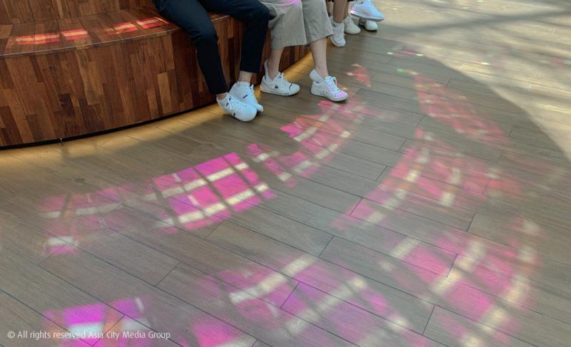 อีกฝั่งหนึ่งจะเป็นอาคารศูนย์การค้า ที่นอกจากข้างในจะมีร้านค้าให้ชอปปิง ร้านสินตค้าปลอดภาษี และร้านอาหารมากมายแล้ว ที่นี่ยังเป็นที่ตั้งของ Paradise Art Space สเปซที่บรรจุงานศิลปะดี ๆ ให้เราได้ดูฟรีหากเป็นแขกเข้าพักที่โรงแรม หรือถ้าไม่ใช่แขกที่นี่ ก็เพียงสมัครสมาชิกของ Paradise City (สมัครฟรี) ก็จะได้สิทธิ์เข้าชมเช่นกัน อย่างช่วงนี้กำลังมีผลงานชุด Prism Fantasy ที่รวบรวมผลงานจากศิลปินมากหน้าหลายตาไว้กว่า 23 ผลงาน ผลงานหลัก ๆ ที่ถือเป็นไฮไลต์ของที่นี่อย่าง Plexus No. 40 ของศิลปิน Gabriel Dawe ที่ศิลปินใช้เส้นด้ายถักเรียงสีไขว้ไปมาจนเหมือนแสงสเปกตรัมที่สวยมาก ๆ จนต้องอ้าปากค้างไปเลย หรือผลงานที่เราชอบอย่าง View Of Vision ของศิลปิน Ryota Kuwakubo ที่เอาวัตถุต่าง ๆ มาวางไว้รอบ ๆ ห้องมืด แล้วให้รถไฟเด็กเล่นที่ติดไฟไว้หน้าขบวนวิ่งป่านวัตถุเหล่านั้น แสงจากขบวนรถไฟที่เคลื่อนผ่านจะสะท้อนวัตถุจนเป็นแสงและเงาที่แปลกตามาก ๆ หรือเจ้า Penquin Mirror ของศิลปิน Daniel Rozin ที่เอาตุ๊กตาเพนกลินกว่า 400 ตัวมาวางไว้ เมื่อเราขยับตัว เจ้าเพนกวินเหล่านั้นก็จะขยับตัวตามด้วย น่ารักมาก ๆ เลย