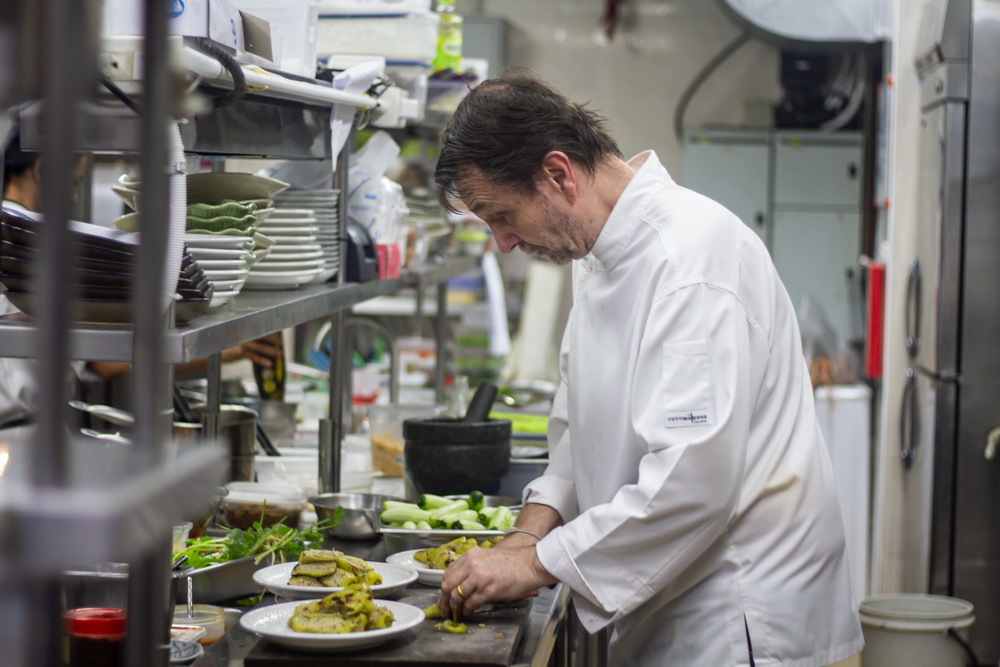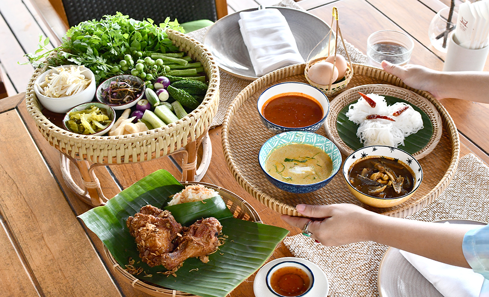 สำหรับมื้ออาหารเย็นก็เป็นอีกหนึ่งความฟินที่เรารอคอยมาตั้งแต่กรุงเทพฯ เลยทีเดียว เพราะเราได้ยินข่าวมาว่า ตอนนี้ทางโรงแรมได้ดึงตัวเชฟ David Thompson เชฟสัญชาติออสเตรเลียนที่หลงรักในการทำอาหารไทยจนเคยคว้าดาวมิชลินมาแล้ว มาช่วยดูแลเมนูอาหารจานเด็ดของห้องอาหารไทยของที่นี่ โดยเชฟเดวิดจะเน้นไปที่การใช้วัตถุดิบอย่างผัก ผลไม้ อาหารทะเล ไปจนถึงน้ำพริกที่เป็นของท้องถิ่นแท้ ๆ ตรงกับหลักการและจริตของเดอะทับแขกที่อยากเก็บรักษาทั้งธรรมชาติและวัฒนธรรมดั้งเดิมของกระบี่ไว้ มื้ออาหารใต้ของที่นี่เลยให้ทั้งรสชาติแบบพื้นบ้านแท้ ๆ จากการคัดสรรวัตถุดิบจากต้นทาง แต่ก็มีกลิ่นไอแบบอินเตอร์เบา ๆ ด้วยเทคนิคการทำครัวขั้นสูงที่เชฟเดวิดถนัด