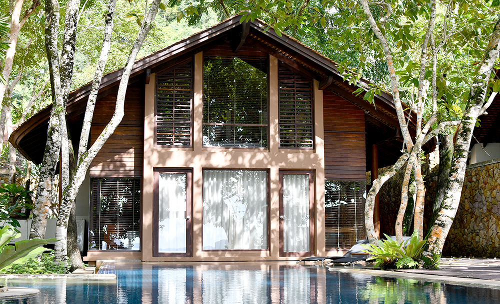 โทนสีน้ำตาลจากไม้เนื้อแข็ง ถูกนำมาใช้เป็นสีหลักเพื่อสร้างมู้ดแบบหรูหรา โฮมมี่ และความเป็นอันหนึ่งอันเดียวกันกับธรรมชาติในเวลาเดียวกัน เตียงนอนน่าทิ้งตัวถูกจัดวางไว้กึ่งกลางวิลล่าที่ขนาบข้างด้วยทางเดินทะลุไปห้องน้ำและห้องแต่งตัวที่สามารถเข้าได้จากทั้งสองฝั่ง ปลายเตียงสามารถเปิดม่านและประตูกระจกออกไปจเอกับสระว่ายน้ำส่วนตัวขนาดใหญ่ที่รายล้อมด้วยสวนสีเขียว รวมถึงโซนเอาท์ดอร์ที่มีทั้งเตียงผ้าใบให้เอนตัวอ่านหนังสือ และอ่างอาบน้ำกลางแจ้งขนาดใหญ่ที่พี่พนักงานแอบมาโรยกลีบกุหลาบไว้ให้จนเต็ม