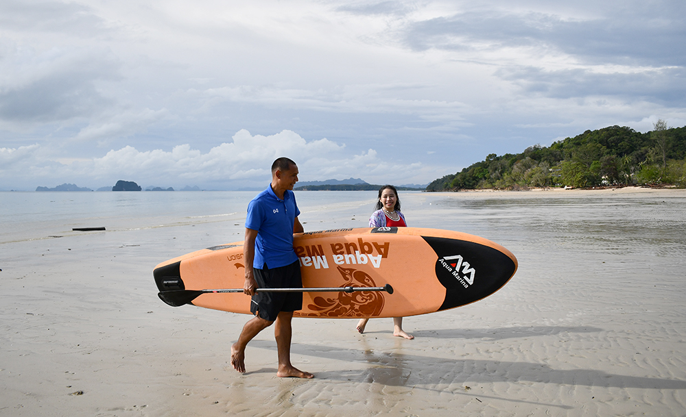 นอกจากเซตปิกนิกริมหาดทับแขกอันแสนสงบ รวมถึงมื้ออาหารพิเศษจากเชฟระดับโลกอย่างที่เราได้เล่าให้ฟังไปแล้ว กิจกรรมที่เราสามารถทำได้ที่เดอะทับแขกก็ยังมีอีกมากมายก่ายกอง ทั้งการพายเรือคายัคและแพดเดิลบอร์ดที่ทางโรงแรมเขาจัดเต็มทั้งอุปกรณ์และสตาฟฝึกสอนไว้คอยให้การดูแลอย่างใกล้ชิดจนเล่นเพลินแทบลืมเวลา