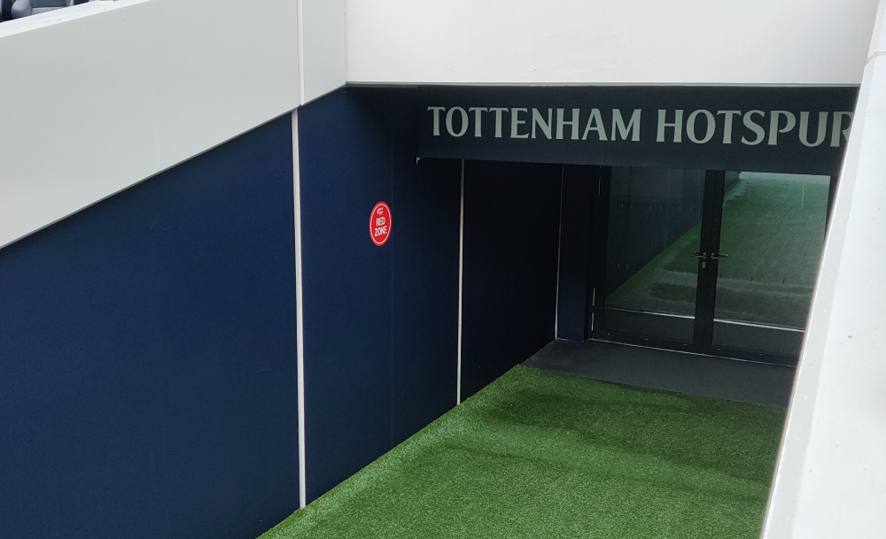 หลังจากไปสูดอากาศตรงชั้นบน ๆ ของสนามแล้ว ในที่สุดเราก็เดินมาถึงขอบสนาม Tottenham Hotspur Stadium ซึ่งเป็นโซนที่เราจะไป 'ลองนั่ง' (จุดนี้คือพิมพ์กี่ทีก็เศร้านะ พอไม่มีเกมแข่งแบบนี้ รู้สึกเหมือนโดนเทแต่ก็ยังจะไปสูดอากาศตรงนั้นซ้ำเติมตัวเองเข้าไปอีก) โดยเซกชันนี้อยู่ติดกับ 'ทันเนล' หรืออุโมงค์ที่นักเตะเดินลงสนามพอดี วิวที่ได้ก็จะประมาณที่เห็นตามภาพด้านล่างนี้เลย...