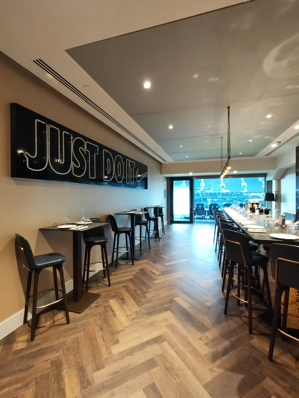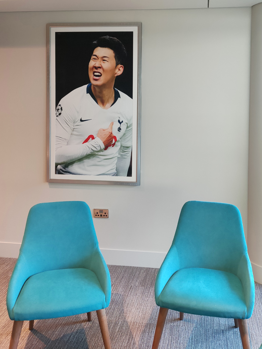ห้องที่เราได้เข้าไปชมบรรยากาศเป็นของ ซนฮึงมิน นักเตะตัวรุกคนสำคัญที่มาร่วมทีมตั้งแต่ฤดูกาล 2015 - 2016 และนี่คือห้องที่ได้ต้อนรับแขกคนสำคัญบ่อยที่สุด เพราะคุณพ่อคุณแม่ของเขามาชมเกมของลูกชายอยู่ตลอด รวมถึงเป็นโซนที่เคยต้อนรับนักแสดงเกาหลีชื่อดัง พักซอจุน ด้วย ส่วนอีกห้องที่บรรยากาศคล้ายกัน (และเราเห็นว่าเป็นพาร์ตเนอร์ที่ 'ออกสื่อได้' เพราะค่อนข้างชัดเจนว่าเป็นพันธมิตรกับสโมสร) ก็คือห้อง Nike ที่ตกแต่งด้วยสโลแกน Just Do It ตัวเบ้อเริ่ม และมีสวูชขนาดใหญ่ติดไว้คู่กับตราสโมสร ให้เห็นกันไปชัด ๆ เลยว่าที่นี่ห้องใคร ไอคอนิกสุด ๆ บอกเลย!