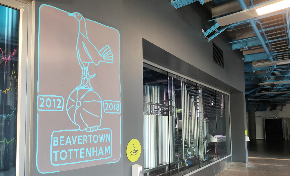 เดินแล้วเดินอีกก็ยังไม่ถึงโซนที่นั่ง เพราะสนามเขาใหญ่จริง ๆ และเราก็ได้เจอเข้ากับโซนเครื่องดื่ม ที่ไม่ได้หมายถึงแค่การขายเครื่องดื่มเท่านั้นด้วยนะ แต่เขามีโรงกลั่นเป็นของตัวเองเลยจ้า แล้วเบียร์ที่ได้ก็มีขายในสนามวันที่มีแข่ง และที่ผับ Beavertown หน้าสนาม ให้ทุกคนได้แวะดื่มกันเมื่อต้องการ (แต่ไม่มีแบบกระป๋องนะ) โดยชื่อของ IPA ตัวนี้ก็เก๋แสนเก๋ นั่นก็คือ One Of Our Own ที่แปลได้ว่า 'ผลผลิตของเรา' ซึ่งมักใช้เรียกนักเตะเด็กปั้นที่เติบโตมาจากศูนย์ฝึกของสโมสรนั่นเอง