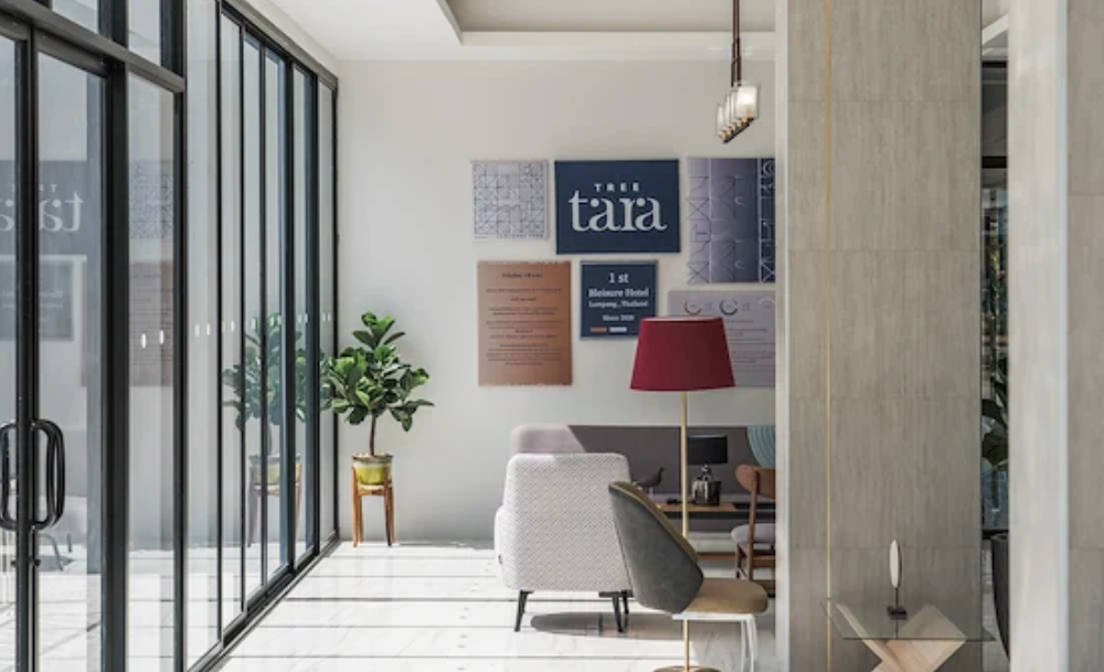 พอดีกับที่เพิ่งรู้ว่าจังหวัดที่มีเสน่ห์ทางประวัติศาสต์เอามาก ๆ แห่งนี้ มีโรงแรมเปิดใหม่ โดยวางคอนเซปต์ Bleisure คือจะ Business หรือ Leisure จะ Work หรือ Play ก็มีสเปซรองรับทั้งนั้น นั่นก็คือที่พักที่มีชื่อว่า Tree Tara Hotel (โรงแรมทรีธารา) นั่นเอง ซึ่งจุดเด่นของที่นี่คือความเป็นโอเพ่นสเปซของเขา ดูโล่งโปร่งสบายตั้งแต่ล็อบบี ร้านขายของที่ระลึก ไปจนถึง Co-working Space