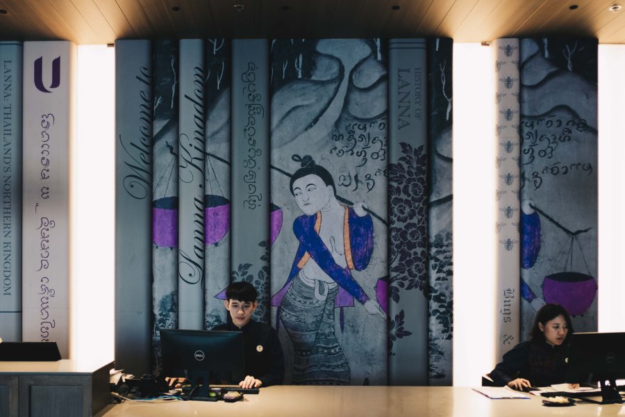 ให้พูดกันตามตรงคือ เราเป็นคนกลัวสิ่งที่มองไม่เห็น (มาก ๆ) พอเลือกที่พักเมื่อไหร่ เราก็จะตัดความเก่าแก่ต่าง ๆ นานาออกไปจากตัวเลือกเป็นอันดับแรก ๆ แต่สำหรับ U Nimman Chiang Mai มันคนละเรื่องเลย จริงอยู่ที่ธีมของโรงแรมเป็นการนำเสนอ วัฒนธรรมล้านนา อันเก่าแก่ของชาวเหนือ แต่ทางโรงแรมได้ประยุกต์ให้โมเดิร์นขึ้น ไม่ว่าจะเป็นการใช้สีชมพูเดินเเส้นหลักสำหรับอินทีเรียร์ ล็อบบี้ที่ถูกออกแบบให้เหมือนห้องสมุด รวมถึงเฟอร์นิเจอร์ทุกชิ้นที่ถูกจัดวางอย่างรอบคอบในทุกอาณาบริเวณ แค่เห็นก็อุ่นใจแล้วว่าไม่ (น่าจะ) มีอะไรทักทายแบบไม่คาดคิดแน่นอน ฮ่า ๆ