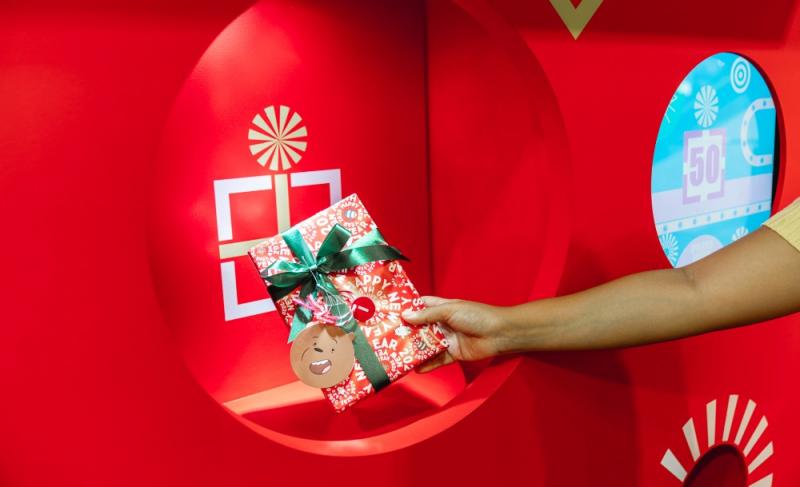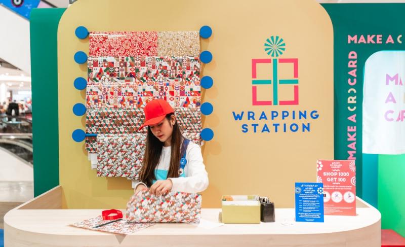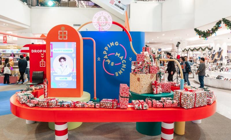 เข้ามาแล้วก็ไปที่บริเวณหน้า Lady Hall ที่อยู่ชั้น 1 ของห้างกันเลย และไม่ต้องกลัวว่าจะหาไม่เจอ เพราะบริเวณจัดงานของเขาน่ะส่งความคิวต์สะดุดตามาแต่ไกล ทั้งบูธจัดงานโทนสีสันสดใสคัลเลอร์ฟูลรับปีใหม่ และที่เด่นสุด ๆ ก็คือสายพานของขวัญที่กำลังหมุนลำเลียงของขวัญมากมาย แต่ว่าจะหมุนไปไหน ไปทำอะไร เราจะมาเฉลยกันทีหลังนะ