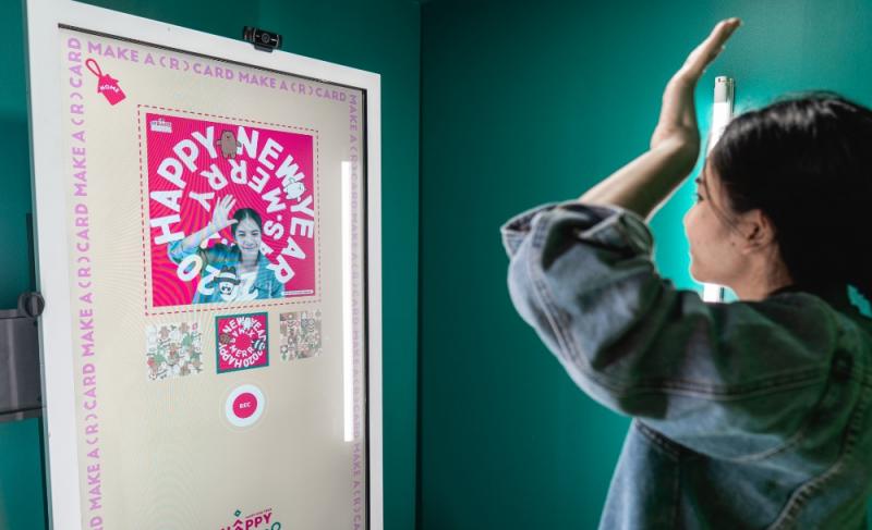 ว่าแล้วก็เข้าไปในตู้ถ่ายรูปที่เขาจัดเอาไว้ให้ จากนั้นก็เลือกรูปแบบการ์ดที่เราอยากได้ จากนั้นก็กดบันทึกวิดีโอได้เลย ระหว่างนี้ก็เตรียมตัวให้พร้อม ยิ้มสวย ๆ แล้วโบกไม้โบกมือส่งความสดใสให้คนรับกันเลย