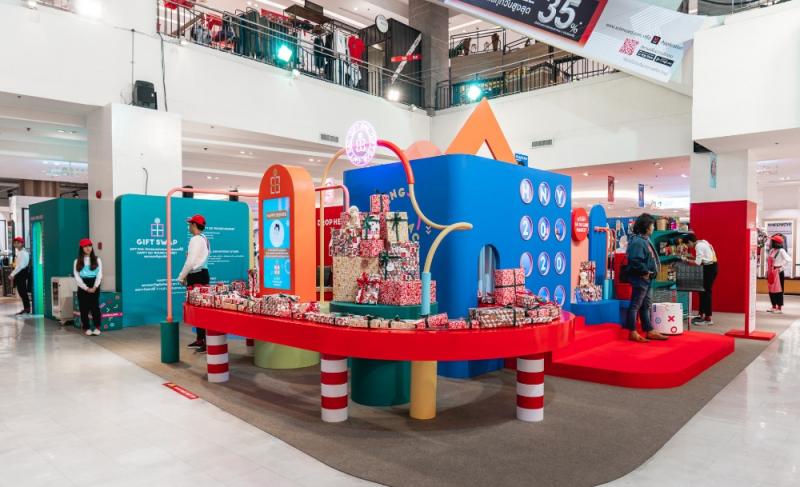 สำหรับกติกาของกิจกรรมนี้ก็ไม่มีอะไรซับซ้อน แค่เราซื้อของภายในงานที่มีมูลค่า 500 บาทขึ้นไป เราก็สามารถนำใบเสร็จมายื่นที่จุด Redemption แล้วนำของขวัญที่เราห่อแล้วไปหย่อนลงในตู้สีแดงแรงฤทธิ์ แต่ถ้าใครที่ชอปปิงภายในเดอะมอลล์ ดีพาร์ทเม้น สโตร์ ก็สามารถร่วมกิจกรรมได้ เพียงนำบิลใบเสร็จรวม 4,000 บาท มาที่จุด Redemption จะได้รับตั๋ว Happy Gift มูลค่า 500 บาทไปเลือกชอปของขวัญเพื่อร่วมกิจกรรม Gift Swap ได้โดยไม่มีค่าใช้จ่ายเพิ่มเติม