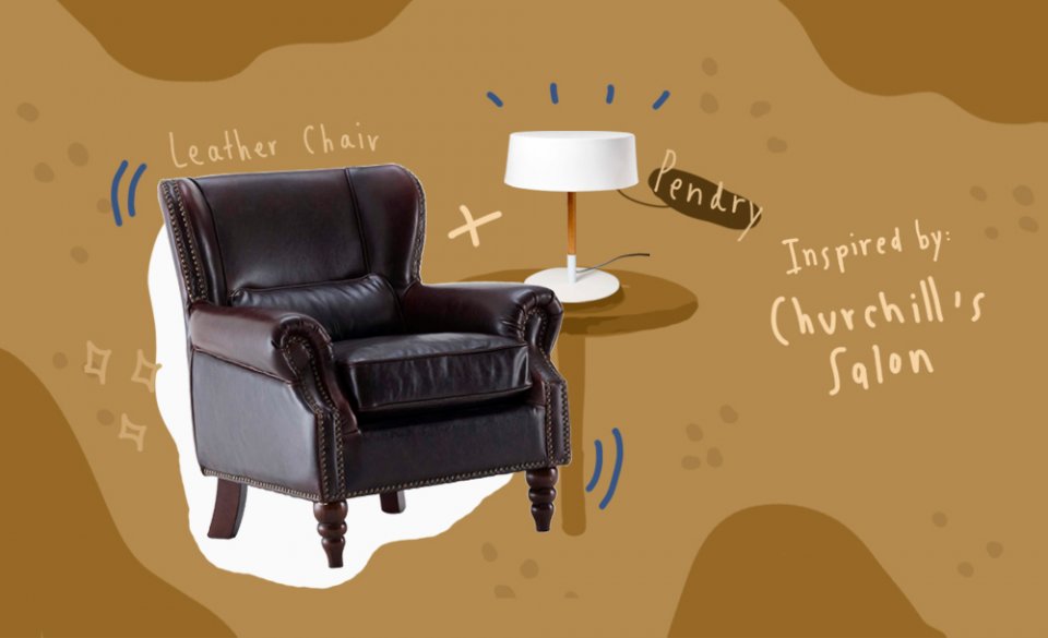 หรือถ้าใครชอบสไตล์ขรึม ๆ แบบห้องนั่งเล่นของวินสตัน เชอร์ชิลล์ ก็จงไปซื้อโซฟาหนังแบบนี้ พร้อมกับโคมไฟ Pendry (6,330 บาท)ที่ให้แสงนวล ๆ เหมือนแสงจากเตาผิง แถมไม่แย่งซีนโซฟาด้วย