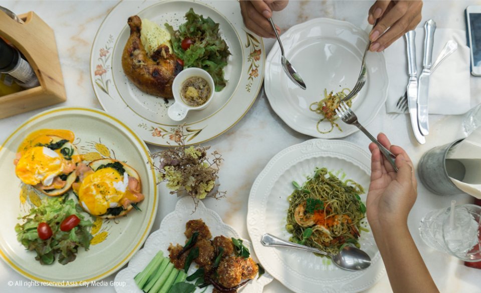 ถ้าเริ่มจากการไปทานบรันช์แบบฝรั่ง เราอยากแนะนำร้าน Daydrem Believer ลองสั่ง Egg Benedict and Smoked Salmon (245 บาท) กับ Angle Hair Pesto Avocado (220 บาท) มากินพร้อมวิวสวนสวย ๆ สไตล์อังกฤษ กับบรรยากาศเรือนกระจกและเฟอร์นิเจอร์วินเทจที่ถ่ายรูปมุมไหนก็ดูดี