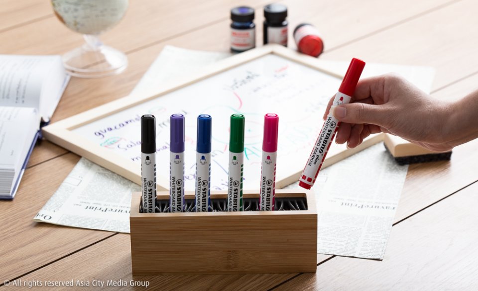 แถมสตาบิโลเค้ายังออกแบบปากกาไวท์บอร์ดคอลเลกชั่นนี้มาเอาใจคนชอบความสร้างสรรค์ ด้วยสีให้เลือกถึง 6 สี คือสีดำ แดง เขียว ม่วง ฟ้า และสีชมพูหวาน พร้อมออปชั่นหัวกลมเอาไว้เขียนหนังสือ และหัวตัดที่เอาไว้ลากเส้นวาดแผนภูมิได้อย่างสวยงาม ฉะนั้นจะซื้อสีที่ชอบไปลองดูสักแท่ง หรือจะกวาดทั้ง 6 สีไปทีเดียวเลยก็ได้ เพราะเรารับรองว่าจะต้องติดใจชัวร์