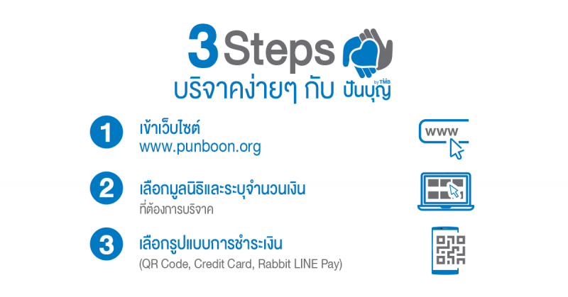 ซึ่งวิธีการบริจาคก็ง่ายมาก แค่เข้าไปที่เว็บไซต์ www.punboon.org เลือกมูลนิธิที่เราอยากทำบุญด้วย ระบุจำนวนเงิน แล้วเลือกวิธีการชำระเงินไม่ว่าจะเป็นการสแกน QR Code แล้วจ่ายผ่านโมบายล์แอปฯ TMB Touch หรือ Mobile Banking ธนาคารอื่น ๆ บัตรเครดิต หรือ Rabbit LINE Pay แค่นี้ก็เรียบร้อย ซึ่งเราชอบมาก ๆ ตรงที่ยอดเงินขั้นต่ำในการบริจาคแต่ละครั้งน่ะอยู่ที่ 10 บาทเท่านั้น! ทำให้เรารู้สึกว่าการทำบุญไม่ใช่เรื่องยาก แถมไม่เป็นภาระต่อกระเป๋าตังค์ นึกอยากจะทำเมื่อไหร่ก็ทำได้ทันทีเลย
