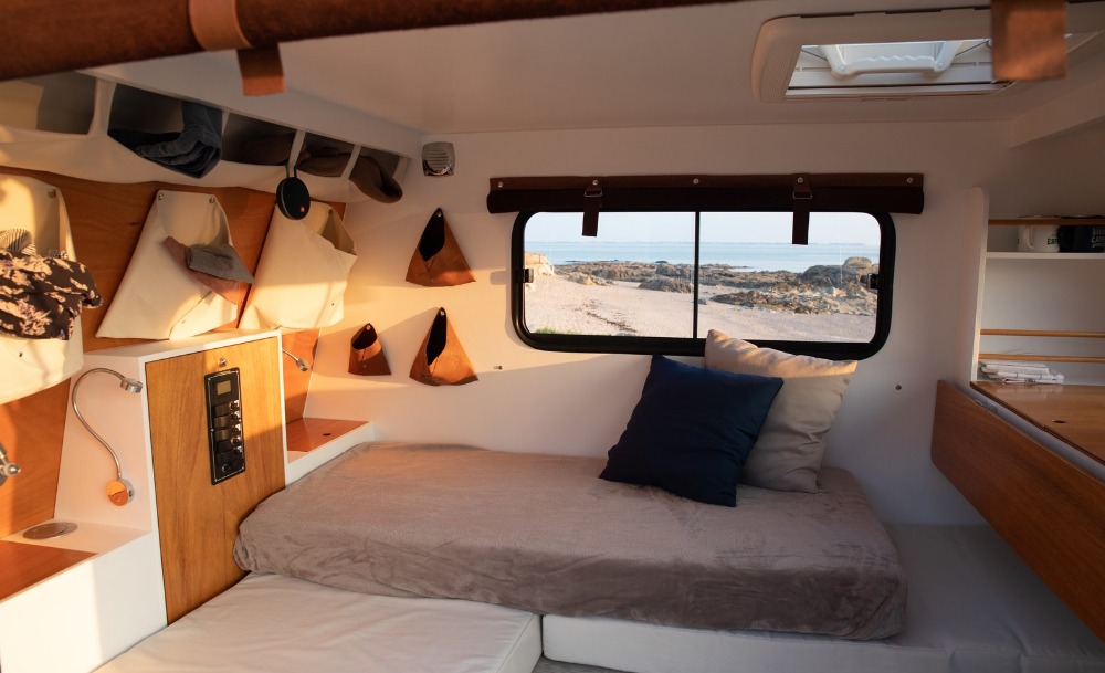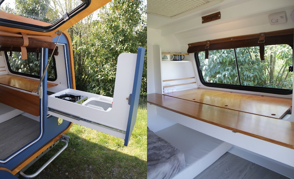 พวกเขาให้ความสำคัญกับการใช้พื้นที่เล็ก ๆ ให้ได้ประโยชน์สูงสุด ทำให้ภายในคาราวานคันนี้เต็มไปด้วยลิ้นชักใส่ของ ที่เก็บของ ชั้นพับเก็บได้ รวมไปถึงหลังคาแบบสกายไลต์ และนอกจากฟังก์ชันภายในแล้ว เจ้ารถคาราวานคันนี้ยังมีครัวที่ถูกออกแบบมาเพื่อให้ใช้ได้ทั้งในรถและนอกรถ ซึ่งมาพร้อมกับอ่างล้างจาน เตาปิ้งบาร์บีคิว และตู้ทำความเย็นขนาด 40 ลิตรด้วย