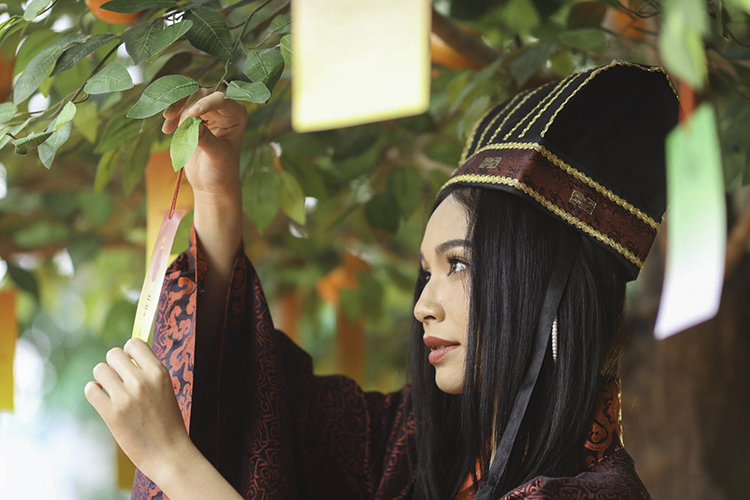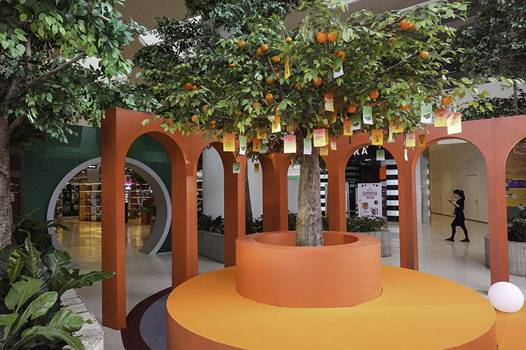 ไปต่อกันที่บริเวณชั้น 2 โซน เดอะ บัลโคนี่ ใครอยากลองหัดเขียนคำมงคลด้วยพู่กันจีนลงบนป้ายแขวน ต้องลองกิจกรรม The Lucky Orange Tree เขียนเสร็จอย่าลืมนำป้ายไปติดที่ต้นส้มเพื่อเสริมความเป็นสิริมงคลให้ตัวเองโชคดีทั้งปีด้วยนะ เสร็จแล้วย้ายมาลองสวมชุดจีนโบราณในบรรยากาศเทศกาลตรุษจีนและผลัดกันถ่ายรูปสนุก ๆ ได้ที่กิจกรรม Emperor for the Day