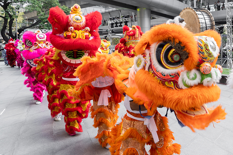 ใครมาที่บริเวณด้านหน้าศูนย์การค้าเซ็นทรัล เอ็มบาสซี ในวันที่ 16 ม.ค. 63 เวลา 19.00 – 20.00 น. ต้องตื่นเต้นไปกับประเพณีการแสดงสำคัญของวัฒนธรรมจีนที่ต้องพาปาป๊า หม่าม้า อากง อาม่า ไปดูให้ได้ อย่างเช่น การเชิดมังกร ‘มหาเทพมังกรทอง’ ที่สื่อถึงความมั่งคั่งและร่ำรวย ส่วนการแสดงสิงโตกระโดดเสาดอกเหมย เชื่อกันว่าจะนำพาความชื่นบาน โชคลาภ ความยิ่งใหญ่ และอายุยืนยาวมาให้คนดู หากใครชอบดูโชว์หวาน ๆ เราแนะนำว่าห้ามพลาการแสดงรำจีนที่ใช้ผ้าร่ายรำอย่างวิจิตรสวยงาม