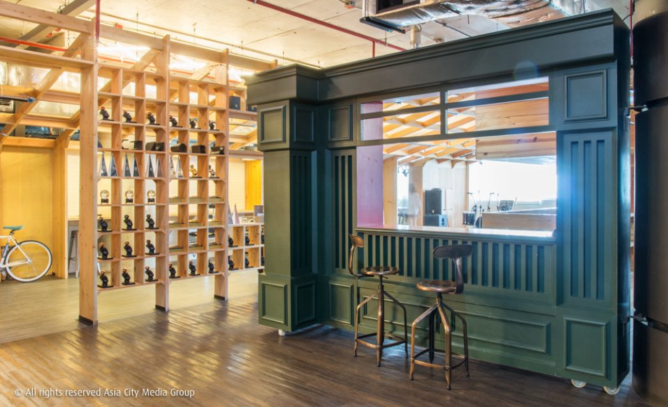 พอเข้ามาข้างในจะเป็นธีมฟาร์มที่ตกแต่งด้วยไม้ คอนเซ็ปต์คือเป็นที่ปลูกความครีเอทีฟ ในแต่ละมุมในออฟฟิศก็ใช้งานแตกต่างกัน อย่างโถงกลางที่ออฟฟิศเก่าเราไม่มี เพราะตอนนั้นพนักงานยังไม่มากเท่าตอนนี้ ตอนนี้เรามีพนักงาน 100 กว่าคน เลยต้องมีโถงขนาดใหญ่ไว้รองรับพนักงานเวลาประชุมใหญ่หรือจัดปาร์ตี้