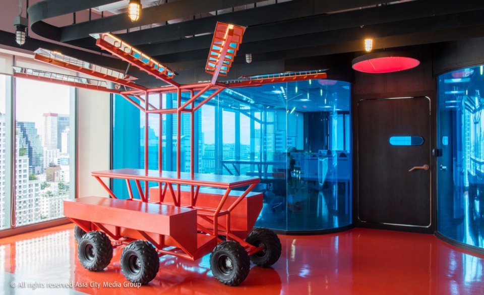 เราจะมีออฟฟิศแยกกันตรงตึก AIA Sathorn Tower ตรงนั้นจะเป็นธีม Rocket Cat กับ Submarine มันก็จะดูล้ำๆ หน่อย เป็นออฟฟิศที่เหมือนยานอวกาศ อีกด้านเป็นเรือดำน้ำ ทำให้รู้สึกเหมือนอยู่ใต้น้ำจริงๆ บางทีพนักงานเราก็เดินไปมาระหว่าง 2 ออฟฟิศ แต่ส่วนใหญ่ก็จะอยู่ CJ/WORX ที่ตึก @Sathorn ซึ่งเป็น Headquarter หลัก