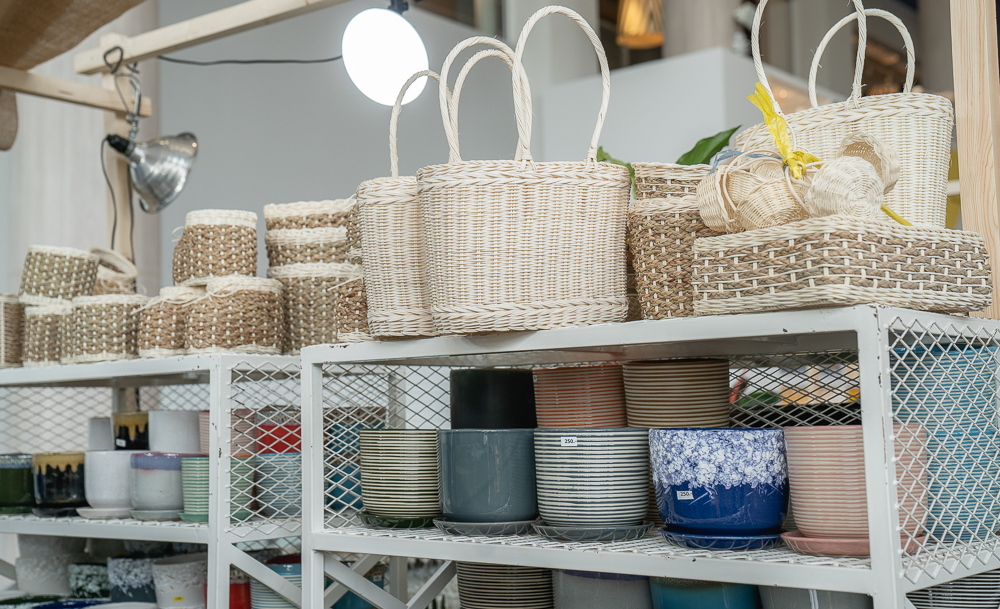 ถัดจากเหล่าต้นไม้ ก็มีของใช้และตกแต่งบ้านน่ารัก ๆ ตั้งแต่จาน ชาม ไปจนกระทั่ง ตะกร้าสาน ซึ่งเป็นงานแฮนด์เมดเกือบทั้งหมด บอกเลยว่าใครที่ชอบงานคราฟต์ งานไอเดียเจ๋ง ๆ จะต้องกดถูกใจให้กับสิ่งนี้ เพราะความน่ารักของสินค้าและสตอรี่ของแต่ละแบรนด์ที่มาออกบูทก็ชวนให้เราประทับใจจนอยากกด CF ไปหมด