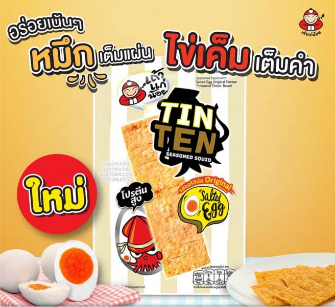 อีกหนึ่งไอเท็มไข่เค็มจากถ้าแก่น้อย กับ Taokaenoi tinten ปลาหมึกแผ่นไข่เค็ม (ราคา 39 บาท) ปลาหมึกแผ่นทอดกรอบ ๆ คลุกเคล้าด้วยซอสไข่เค็มเข้มข้น สูตรลับจากเถ้าแก่น้อย เป็นอีกหนึ่งไอเท็มที่น่าสนใจ ซึ่งเราเองก็ชิมมาแล้ว และขอยกให้เป็นอีกหนึ่งไอเท็มที่ใช้ได้เลยสำหรับใครที่ชอบไข่เค็ม (อย่างน้อยก็ดีกว่าสาหร่ายเทมปุระไข่เค็มของเขาเหมือนกัน) จะกินเล่น ๆ เป็นของว่าง หรือจะเอาไปใส่ในมาม่าก็ย่อมได้