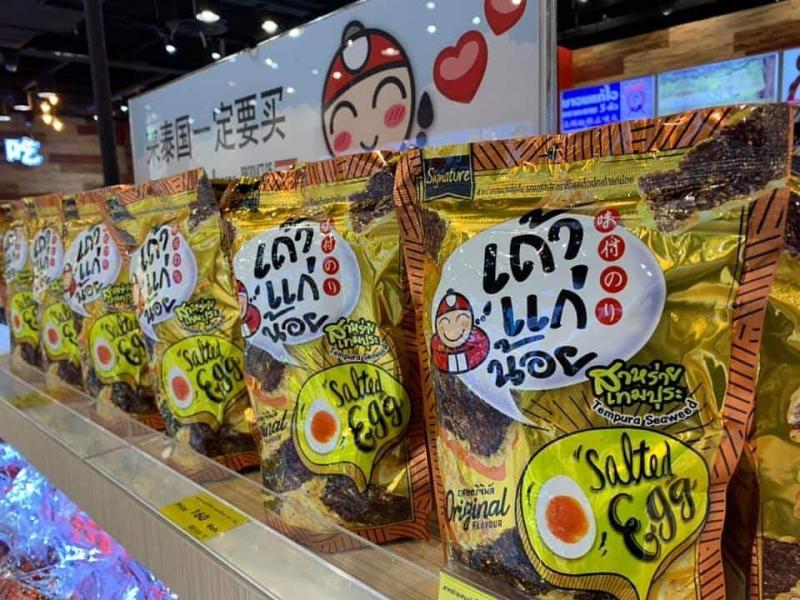 หลายคนต้องรู้จัก เถ้าแก่น้อย ยี่ห้อสาหร่ายทอดกรอบปรุงรสที่โด่งดังไปจนถึงต่างประเทศ ชนิดที่อาหมวยอาตี๋ ออนนี่อปป้ามาขนกลับประเทศกันถล่มถลาย ก็เพราะรสชาติที่อร่อยกล่มกลอมสามารถกินเพลิน ๆ ได้เอฟวี่ไทม์ อีกทั้งเขาก็ออกรสชาติใหม่มาเรื่อย ๆ อย่างล่าสุดกับสูตรเทมปุระไข่เค็ม (39บาท) ที่ได้เพิ่มรสชาติความนัว เข้มข้นของไข่เค็มขึ้นไปอีก แต่ทั้งนี้ทั้งนั้นเราได้ลองแล้วก็ยังไม่ฟินเท่าไหร่ เพราะไข่เค็มยังมาจาง ๆ และพอเป็นสาหร่ายเทมปุระก็รู้สึกว่าเรากินแป้งเยอะไปนิดนึง
