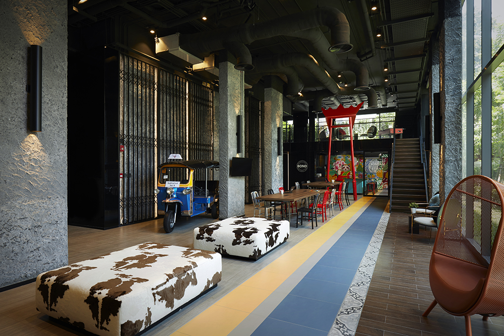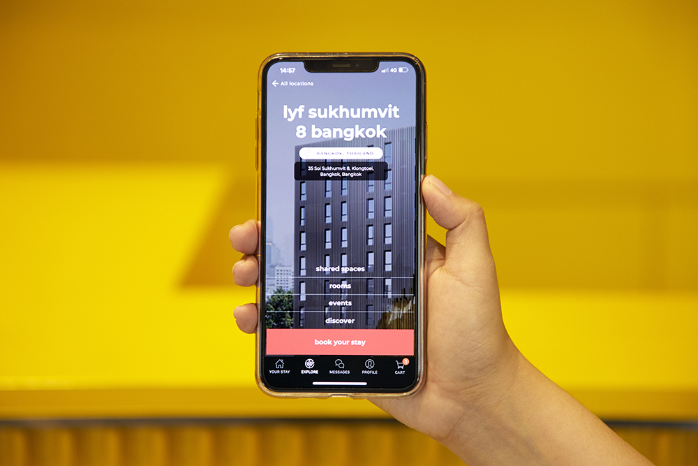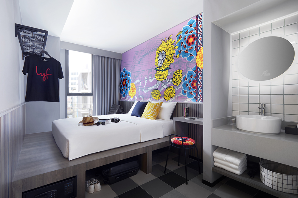 ส่วนแรกก็คือพื้นที่การใช้ชีวิตอย่าง lyf Co Living Apartments ที่ชื่อว่า One of A kind ซึ่งเป็นส่วนของห้องพักที่มาพร้อมกับฟังก์ชั่นครบครัน และการตกแต่งด้วยสีสันที่ทำให้เรารู้สึกเหมือนถูกโอบล้อมด้วยสปิริตแห่งสีสันของกรุงเทพฯ
