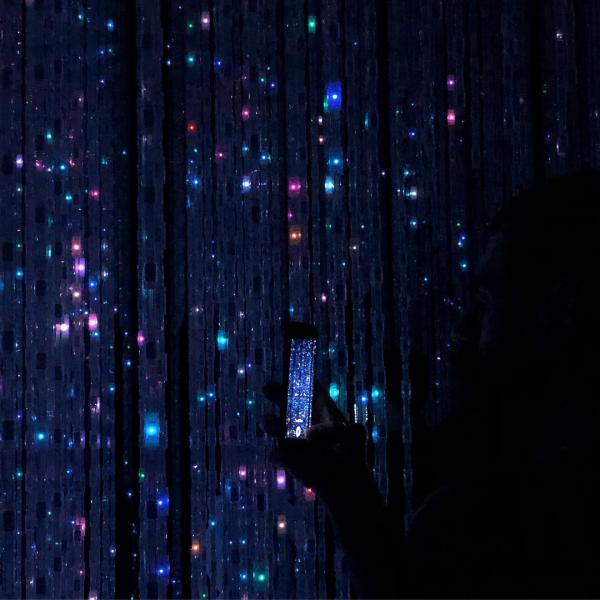 แต่ทั้งนี้ทั้งนั้นเราคิดว่าไฮไลต์ของพิพิธภัณฑ์แห่งนี้อยู่ที่ห้อง The Haze ที่ใช้เส้นแสงและควันช่วยกันร้างรูปทรงใหม่ ๆ ขึ้นมา ไฟที่เคลื่อนที่เปลี่ยนไปได้หลากหลายรูปทรงทำเอาเราตื่นเต้นมาก และสนุกกับห้องนี้มาก ๆ อีกห้องคือที่เราชอบคือ Memory of Topography เพราะอยู่ห้องนี้แล้วรู้สึกสงบดี ห้องเป็นจานกลม ๆ ประดับอยู่ โดยจำลองลักษณะของเนินเขา แล้วยิงภาพโปรเจ็คเตอร์ลงบนจานนั้น เป็นภาพปลาแหวกว่าย ต้นข้าว ต้นไม้ และผีเสื้อ แล้วเราก็เดินผ่าเข้าไปในจานนั้น ๆ ภาพรอบตัวของเราจะตอบสนองกับการเคลื่อนไหวของเราด้วย อีกห้องที่เราชอบคือ The Crystal World ที่หลายคนคงเห็นกันมาชินตาแล้วกับห้องไฟ LED กล่าแสนดวง ห้องนี้เก๋ตรงที่ถ้าเราโหลด Application ของ Teamlab มาไว้ เราจะสามารถสั่งการไฟในห้องนั้นได้ด้วย