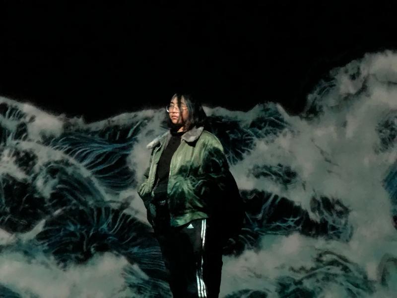 แต่ห้องที่เราถือว่าเป็นไฮไลต์ของงานนี้ (เพราะเราเลิฟมาก) คือห้องปลาคาร์ฟ ที่ต้องลุยน้ำระดับหัวเข่าเข้าไป น้ำในห้องนี้จะถูกทำให้เป้นสีขุ่นเพื่อรับภาพโปรเจ็คเตอร์ที่ฉายลงไปในน้ำได้ เราจะได้ลุยน้ำไปพร้อมปลาคาร์ฟนับร้อย ๆ ตัว และมวลหมู่ดอกไม้ที่ลอยไปมา เมื่อเราเคลื่อนไปใกล้ ปลาก็จะว่ายหนี ดอกไม้ก็จะแตกตัวออก เรียกว่าห้องนี้สนุกมากจริง ๆ แหละ อีกห้องที่เราว้าวคือ Floating in the Falling Universe of Flowers เพราะนี่คือเธียเตอร์โดม 360 องศาขนาดมหึมา ลองไปนอนกลางห้อง แล้วมองดูห้วงอวกาศที่มีดอกไม้ลอยปลิวกระจายเต็มจักรวาลดูสิ ใันให้ความรู้สึกเหมือนเรากำลังลอยอยู่ในจักรวาลจริง ๆ เลยล่ะ