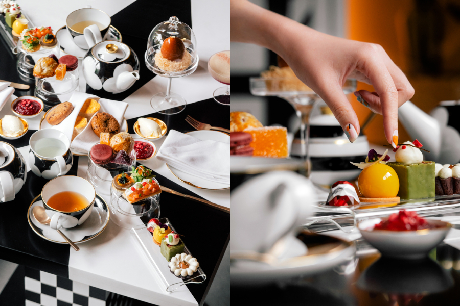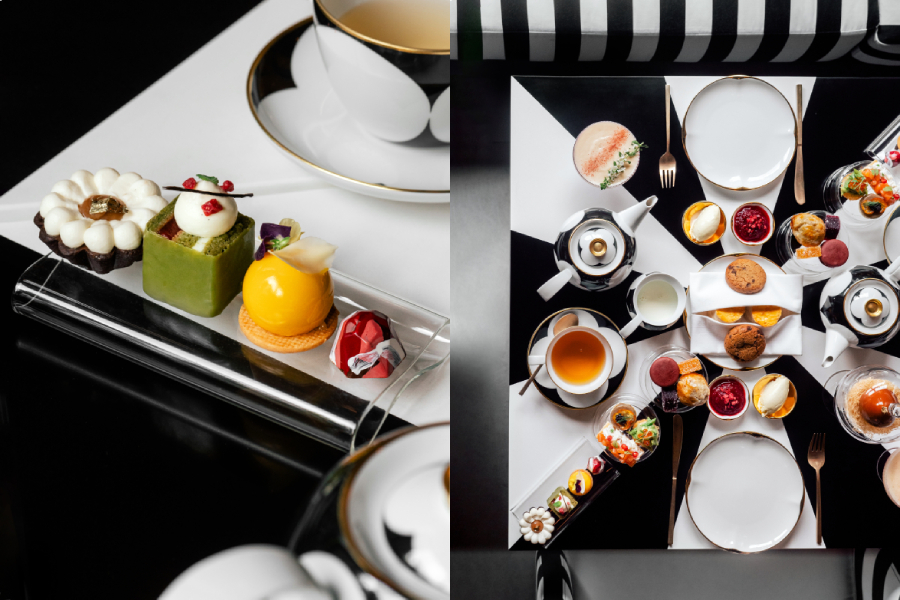 การเดินทางก็ง่ายอย่าบอกใคร แค่ลงบีทีเอสสถานีช่องนนทรี แล้วมาที่ชั้น L ของโรงแรม ก็จะเจอกับห้องขาวดำสะดุดตา ให้ความรู้สึกโมเดิร์น ต่างจากมุมน้ำชาทั่วไปที่จะคุมโทนสีอ่อนไว้ก่อน ซึ่งพอเป็นห้องน้ำชาสีขาวดำแบบนี้ก็ทำให้ถ่ายรูปแล้วเก๋ชิคสุดๆ แถมแสดงจุดยืนชัดเจนว่าเมนูของกินและชาของที่นี่จะต้องไม่ธรรมดาแน่นอน