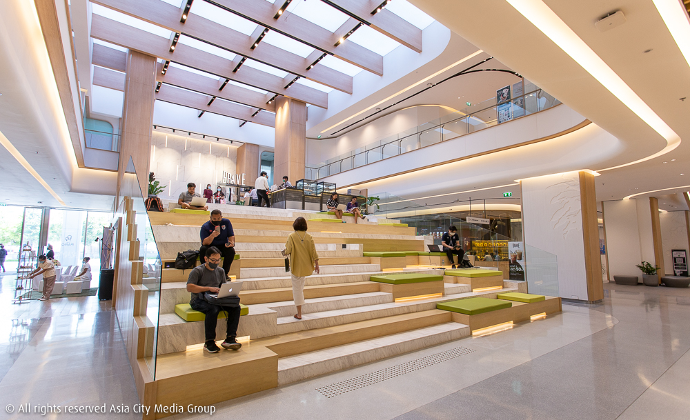 แล้วไม่ใช่แค่การรวมร้านอาหารเครื่องดื่ม บริการด้านความสวยความงาม หรือบริการเฉพาะทางด้านอื่น ๆ เข้าไว้ด้วยกันในที่เดียวเท่านั้นนะ แต่โครงการนี้เขายังใส่กับความครบถ้วนและชีวิตที่บาลานซ์ลงไปตั้งแต่ขั้นตอนการออกแบบเลยทีเดียว โดยเน้นคุณภาพของอากาศ น้ำ และแสงสว่างภายในอาคาร รวมไปถึงร้านค้าที่ร่วมโครงการ ก็ต้องตามมาตรฐานที่วางไว้ ศูนย์อาหารต้องมีเมนูโซเดียมต่ำ น้ำตาลน้อย มีเมนูมังสวิรัติหลากหลาย ขณะที่ซูเปอร์มาร์เก็ตก็ต้องมีไอเทมออร์แกนิกให้เลือกอย่างเพียงพอ
