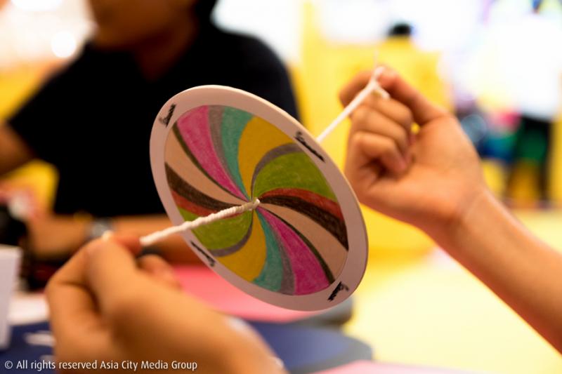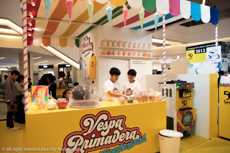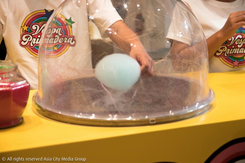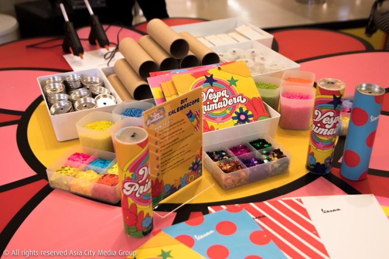 นอกจากนี้ยังมีกิจกรรมเวิร์คช็อปของเล่นย้อนยุคอนาล็อก เช่น การประดิษฐ์กล้องสลับลายหรือกล้องคาไลโดสโคป, เข็มกลัดประดิษฐ์ด้วยมือ และกระดาษหมุนลายรุ้ง (Paper Spinner) ด้วยนะ อ้อ ในงานเขามีแจกขนมสายไหมให้ได้อร่อยแบบย้อนวัยกันฟรี ๆ ด้วยนะ แค่ถ่ายรูปในงานแล้วโพสต์ ติดแฮชแท็ก #VespaThailand #VespaPrimavera50th ก็เอาไปกินได้เลยจ้า