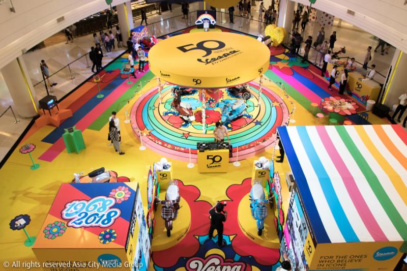 แม้จะย้อนเวลากลับไปเกิดในยุค '60s ไม่ได้ แต่ตอนนี้เรามีอิเวนต์คูล ๆ ที่จะพาเราย้อนไปดูสีสัน เรื่องป๊อบ ๆ และต้นกำเนิดของสิ่งประดิษฐ์ต่าง ๆ ในยุค '60s ได้ง่าย ๆ แค่ไปสยามพารากอน ! (จริง ๆ ไม่ได้โกหก) เพราะตอนนี้กำลังมีงานอย่าง Vespa Primavera Wonderland ที่จะพาเราย้อนกลับไปในยุค '60s ได้ง่าย ๆ ซึ่งแค่สีสันของงานก็เรียกว่าเตะตาเราตั้งแต่ก้าวเข้าห้างกันเลยทีเดียว เพราะพี่แกเล่นหยิบเอาสีสันและลวดลายอย่าง Psychedelic Art, Flower Power หรือแม้กระทั่ง Pop Art มาตกแต่งได้อย่างสนุกสนาน ทั้งซุ้ม และพื้นของงาน