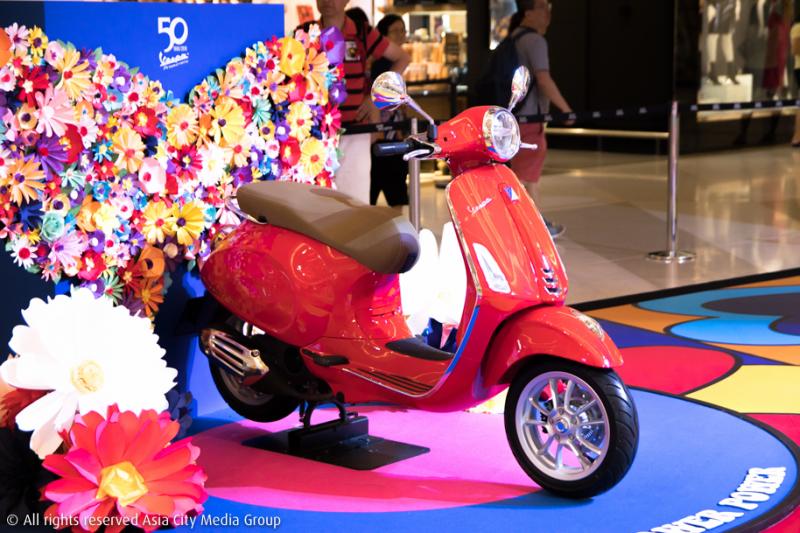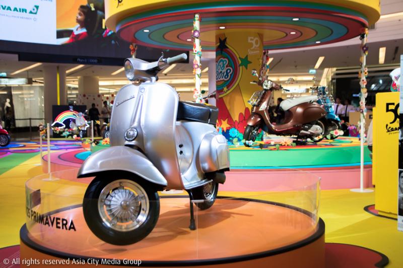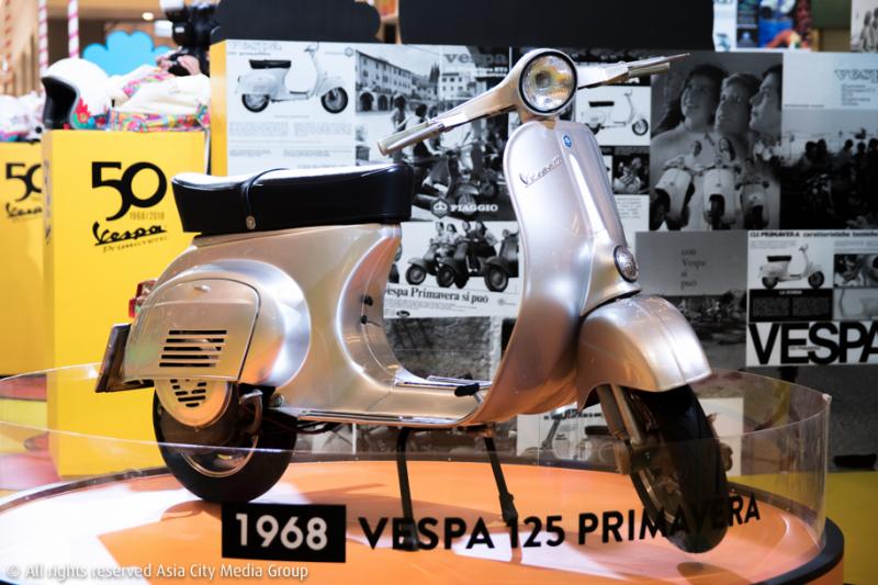 ความเก๋ไก๋อีกอย่างคือเขายังเอาเวสป้าอิดิชั่นพิเศษ Vespa Primavera 50th Anniversary Edition ที่ผลิตออกมาฉลองการครบรอบ 50 ปีของเวสป้าตระกูลพรีมาเวร่ามาตั้งเทียบกับรุ่นแรกให้ดูถึงพัฒนาการและการเปลี่ยนแปลงกันไปเลย ซึ่งเจ้าเวสป้าอิดิชั่นพิเศษนี้ ได้แรงบันดาลมาจาก Vespa Primavera ต้นฉบับปี 1968 ผสมผสานกับความทันสมัยของรถสกู๊ตเตอร์เวสป้าต้นแบบ Vespa 946 นั่นเอง แอบกระซิบว่าเขาผลิตออกมาเพียง 400 คันเท่านั้นด้วยนะ (สีน้ำตาลด้าน กับสีฟ้า อย่างละ 200 คัน) อยากได้ก็ต้องจับจองแล้วล่ะ